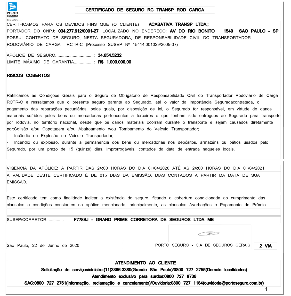 RCTR-C: Seguro de Responsabilidade Civil do Transportador Rodoviário Carga