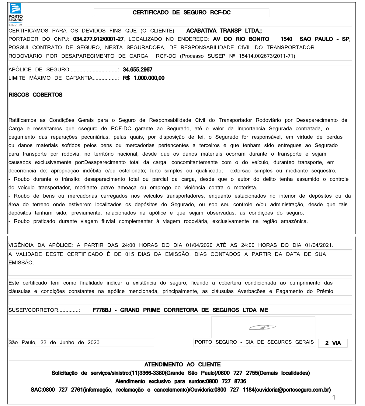 RCF-DC: Seguro de Responsabilidade Civil Desaparecimento de Carga